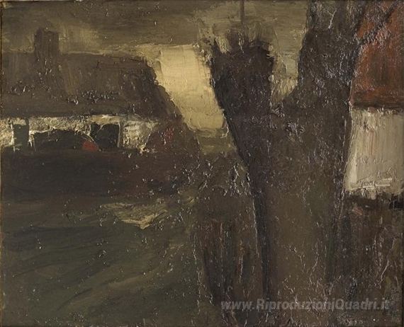 Ti offriamo una riproduzione artigianale su tela dell'opera famosa 'La ferme au saule' di Constant Permeke, dal Museo delle Riproduzioni.