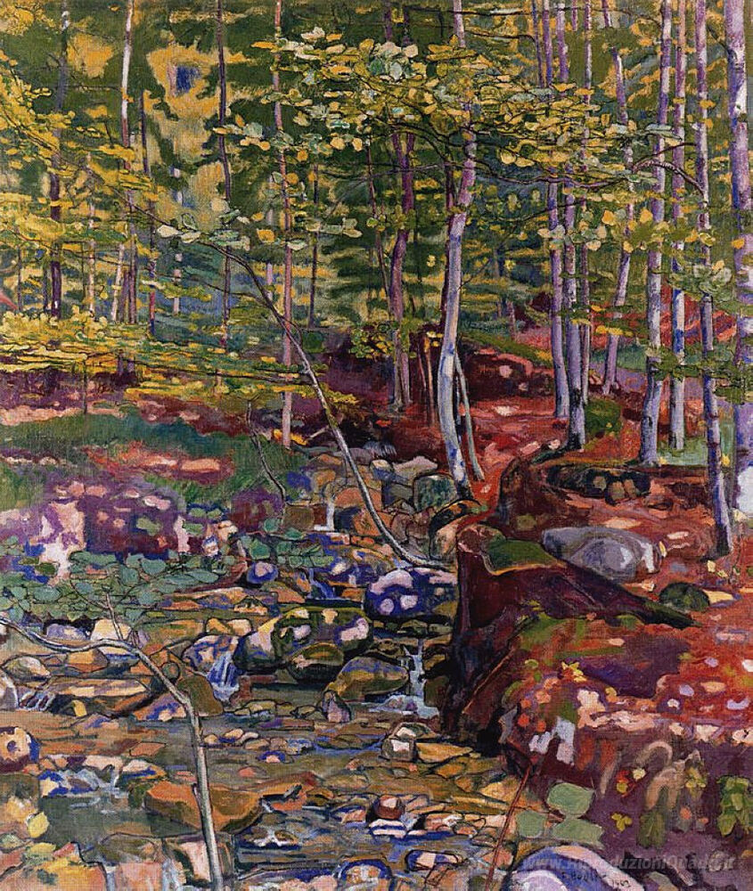Ti offriamo una riproduzione artigianale su tela dell'opera famosa 'La Foresta vicino Reichenbach' di Ferdinand Hodler, dal Museo delle Riproduzioni.