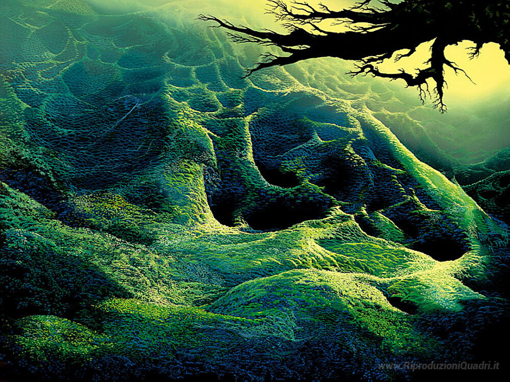 Ti offriamo una riproduzione artigianale su tela dell'opera famosa 'La mia anima' di Eyvind Earle, dal Museo delle Riproduzioni.