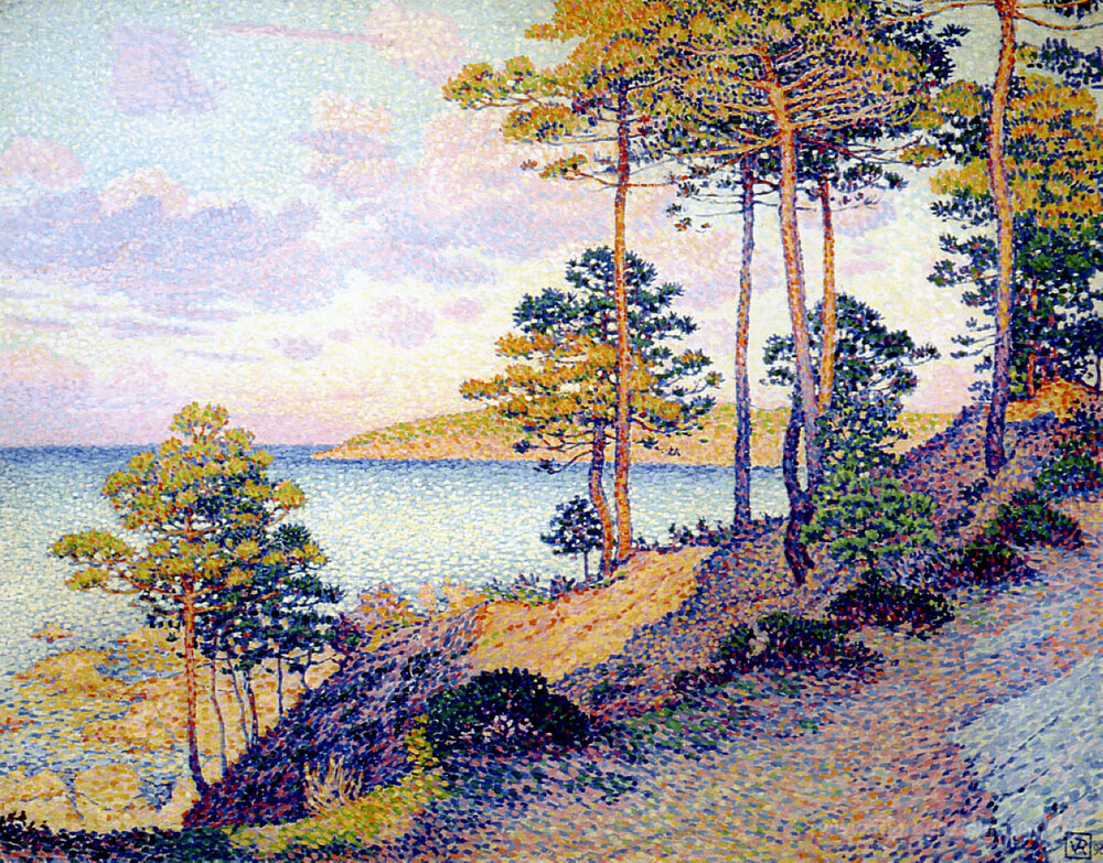 Ti offriamo una riproduzione artigianale su tela dell'opera famosa 'La Pointe St. Pierre a St. Tropez' di Theo van Rysselberghe, dal Museo delle Riproduzioni.