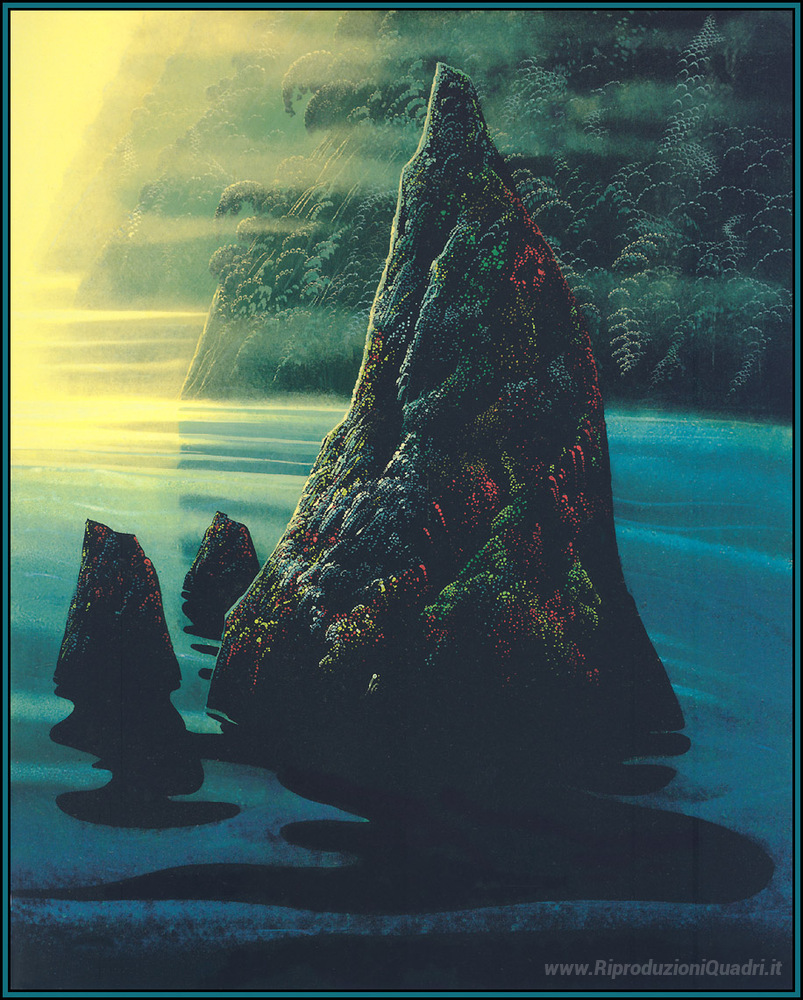 Ti offriamo una riproduzione artigianale su tela dell'opera famosa 'La roccia' di Eyvind Earle, dal Museo delle Riproduzioni.