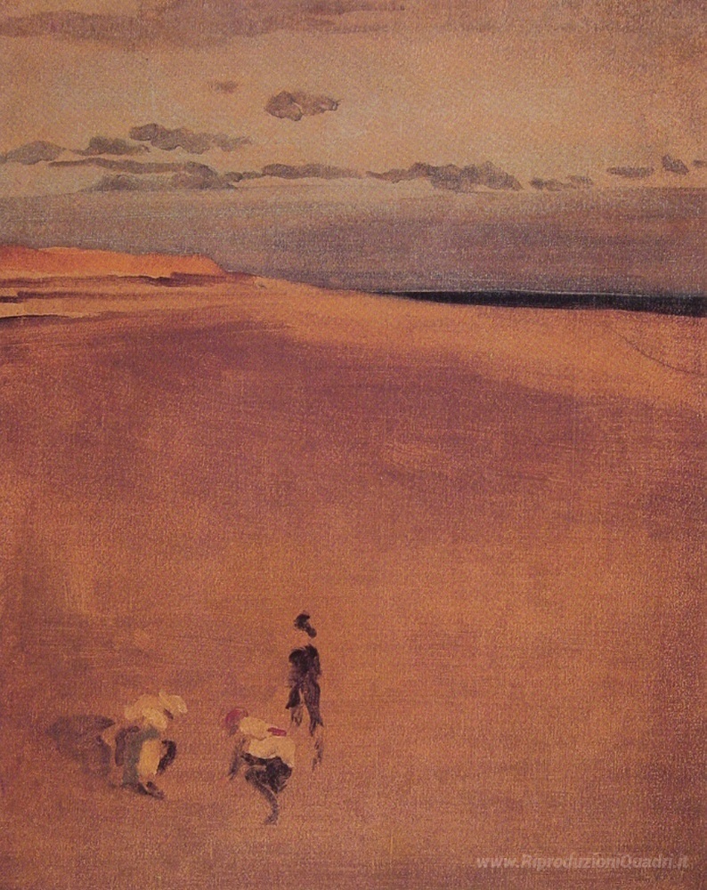 Ti offriamo una riproduzione artigianale su tela dell'opera famosa 'La spiaggia a Selsey Bill' di James McNeill Whistler, dal Museo delle Riproduzioni.