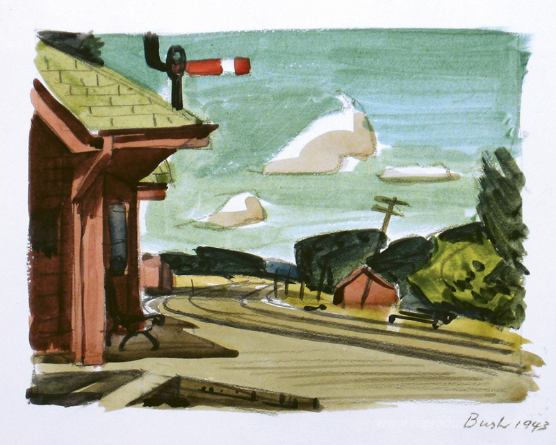 Ti offriamo una riproduzione artigianale su tela dell'opera famosa 'La stazione ferroviaria di Senza titolo,' di Jack Bush, dal Museo delle Riproduzioni.