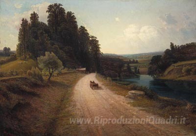 Ti offriamo una riproduzione artigianale su tela dell'opera famosa 'La strada di pietra' di Homer Watson, dal Museo delle Riproduzioni.