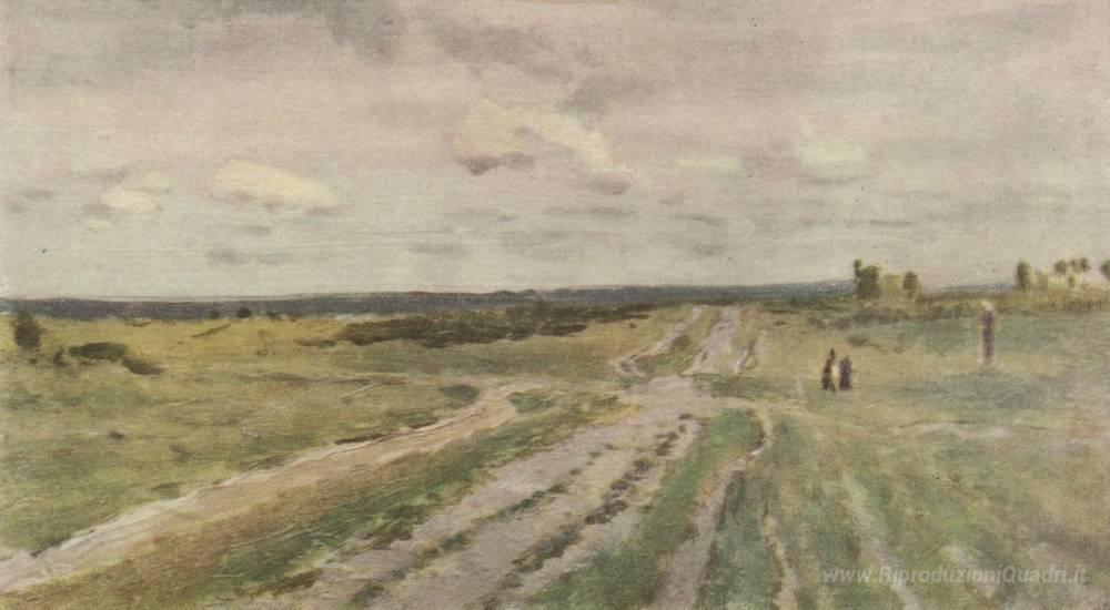 Ti offriamo una riproduzione artigianale su tela dell'opera famosa 'La strada di Vladimir' di Isaac Levitan, dal Museo delle Riproduzioni.