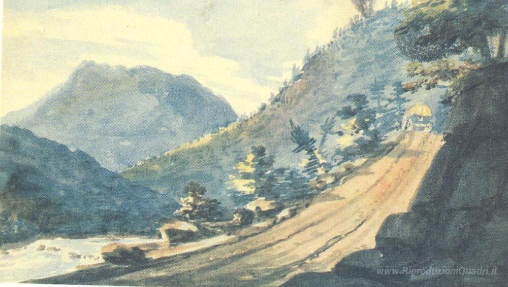 Ti offriamo una riproduzione artigianale su tela dell'opera famosa 'La strada in montagna' di Pavel Svinyin, dal Museo delle Riproduzioni.
