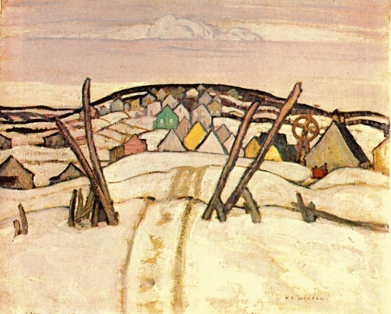 Ti offriamo una riproduzione artigianale su tela dell'opera famosa 'La strada Inverno, Québec' di A.Y. Jackson, dal Museo delle Riproduzioni.