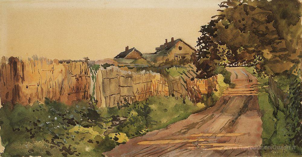 Ti offriamo una riproduzione artigianale su tela dell'opera famosa 'La strada nel paese' di Konstantin Somov, dal Museo delle Riproduzioni.
