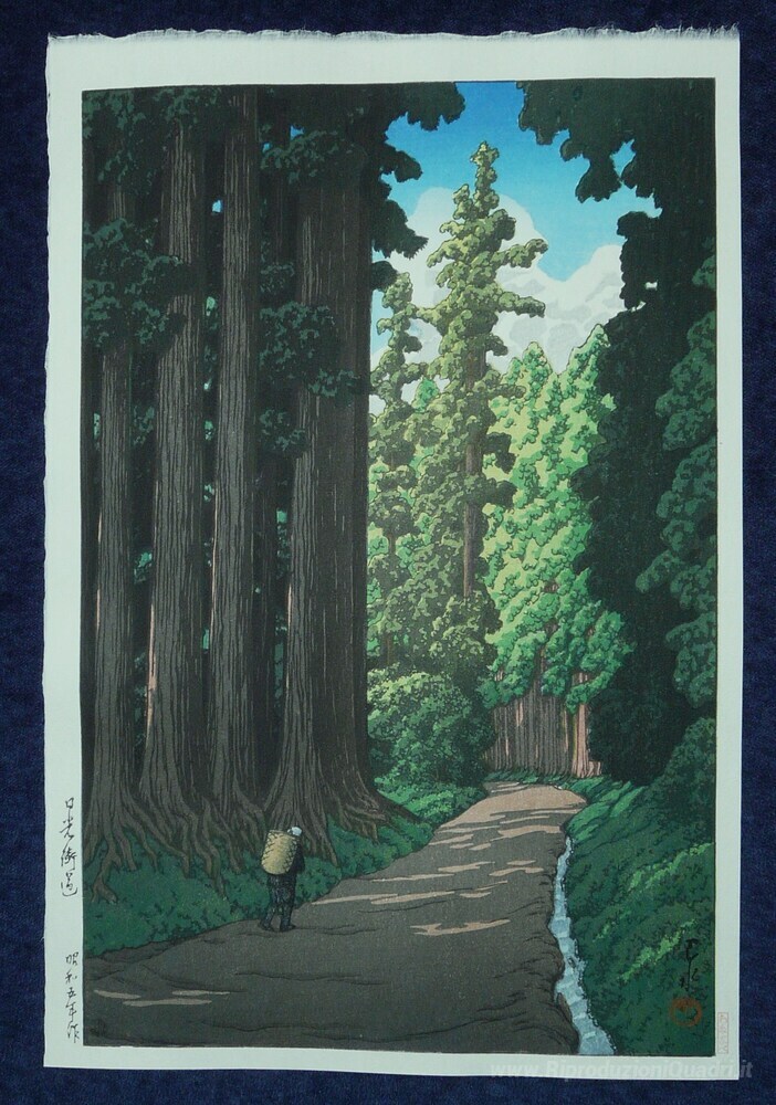 Benvenuti nel nostro mondo di dipinti a olio italiani, dove ogni opera racconta una storia unica e affascinante. Oggi vi presentiamo La strada per Nikko, un capolavoro dell'illustre artista giapponese Hasui Kawase, noto per la sua abilità nel catturare la bellezza e la tranquillità dei paesaggi. Le sue opere sono caratterizzate da una delicata armonia di colori e da una particolare attenzione ai dettagli, che riescono a trasportare lo spettatore in un'altra dimensione.