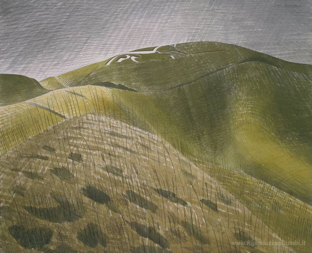 Ti offriamo una riproduzione artigianale su tela dell'opera famosa 'La Valle del Cavallo Bianco' di Eric Ravilious, dal Museo delle Riproduzioni.