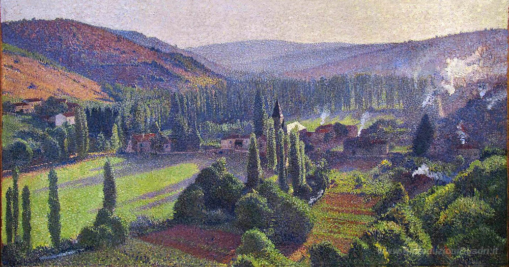 Ti offriamo una riproduzione artigianale su tela dell'opera famosa 'Labastide du Vert a Marquayrol' di Henri Martin, dal Museo delle Riproduzioni.