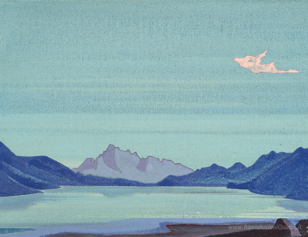 Ti offriamo una riproduzione artigianale su tela dell'opera famosa 'Laghi Tibetani' di Nicholas Roerich, dal Museo delle Riproduzioni.