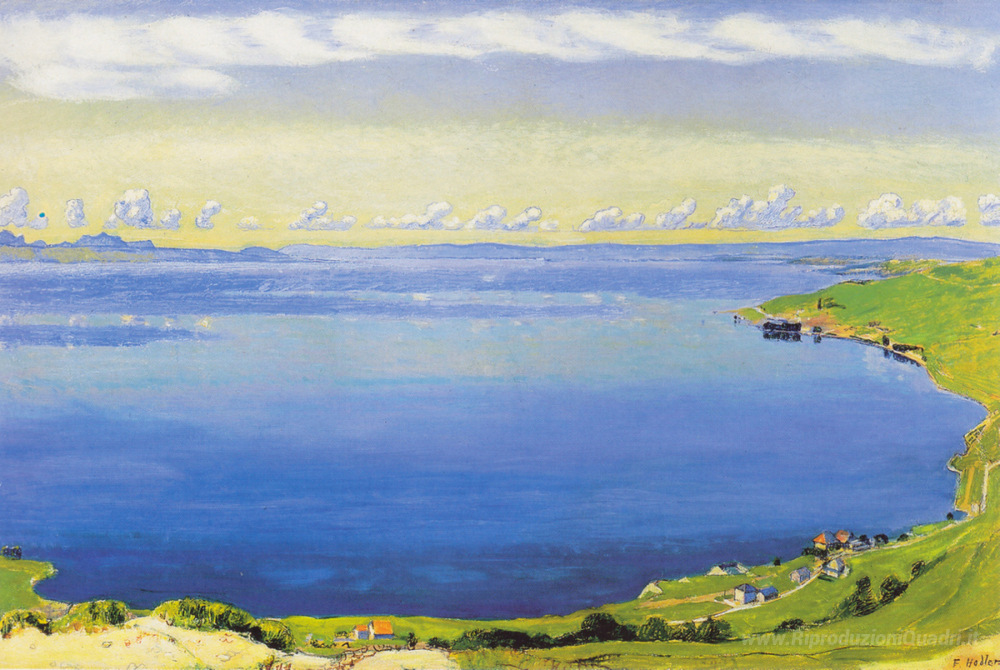 Ti offriamo una riproduzione artigianale su tela dell'opera famosa 'Lago di Ginevra a Chexbres' di Ferdinand Hodler, dal Museo delle Riproduzioni.