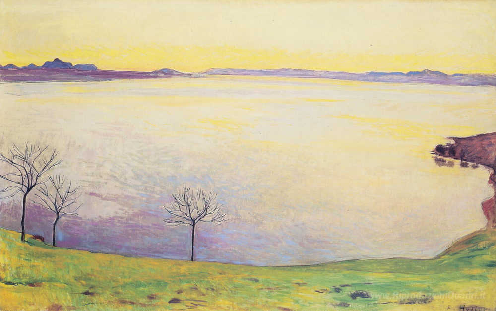 Ti offriamo una riproduzione artigianale su tela dell'opera famosa 'Lago di Ginevra a Chexbres' di Ferdinand Hodler, dal Museo delle Riproduzioni.