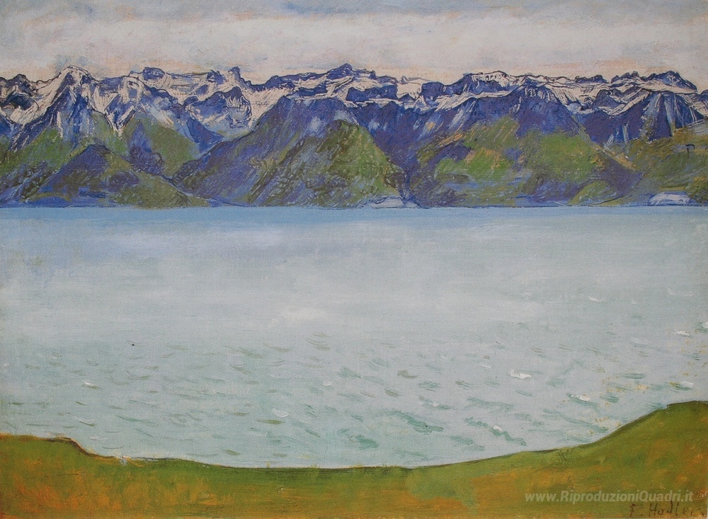 Ti offriamo una riproduzione artigianale su tela dell'opera famosa 'Lago di Ginevra con Savoyerbergen' di Ferdinand Hodler, dal Museo delle Riproduzioni.