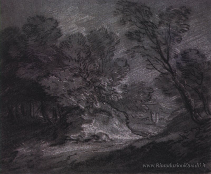 Ti offriamo una riproduzione artigianale su tela dell'opera famosa 'Landsape foresta di montagna' di Thomas Gainsborough, dal Museo delle Riproduzioni.