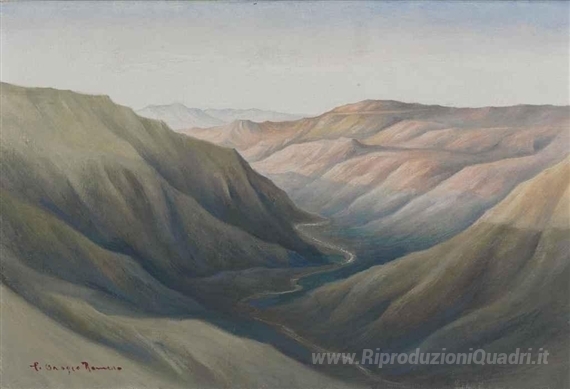 Ti offriamo una riproduzione artigianale su tela dell'opera famosa 'Las monta?as' di Carlos Orozco Romero, dal Museo delle Riproduzioni.