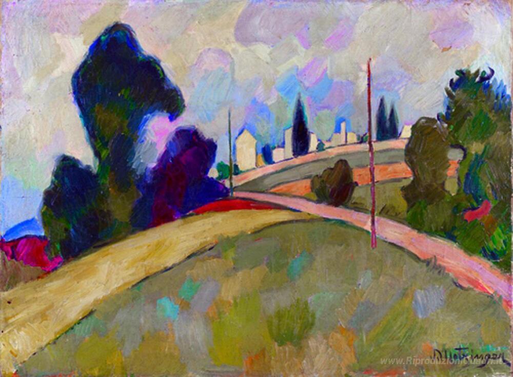Ti offriamo una riproduzione artigianale su tela dell'opera famosa 'Le Chemin una travers les champs' di Jean Metzinger, dal Museo delle Riproduzioni.