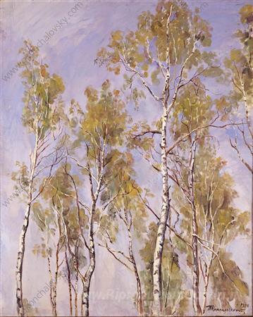 Ti offriamo una riproduzione artigianale su tela dell'opera famosa 'Le cime delle betulle' di Pyotr Konchalovsky, dal Museo delle Riproduzioni.