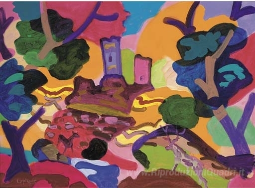 Ti offriamo una riproduzione artigianale su tela dell'opera famosa 'Le coup de foudre' di Charles Lapicque, dal Museo delle Riproduzioni.