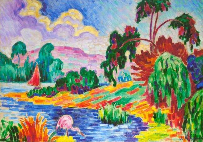 Ti offriamo una riproduzione artigianale su tela dell'opera famosa 'Le Flamant rose et Le Voilier' di Jean Metzinger, dal Museo delle Riproduzioni.