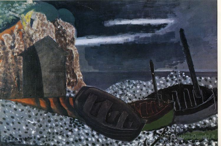 Ti offriamo una riproduzione artigianale su tela dell'opera famosa 'Le Tre barche' di Georges Braque, dal Museo delle Riproduzioni.