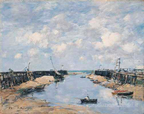 Ti offriamo una riproduzione artigianale su tela dell'opera famosa 'L'entrata' di Eugene Boudin, dal Museo delle Riproduzioni.