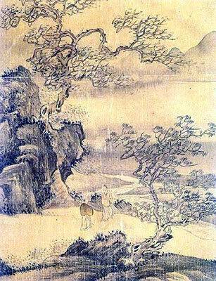 Ti offriamo una riproduzione artigianale su tela dell'opera famosa 'L'immagine di un uomo nel paesaggio' di Owon, dal Museo delle Riproduzioni.