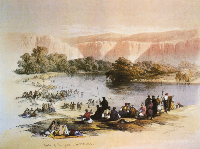 Ti offriamo una riproduzione artigianale su tela dell'opera famosa 'L'immersione dei Pellegrini' di David Roberts, dal Museo delle Riproduzioni.