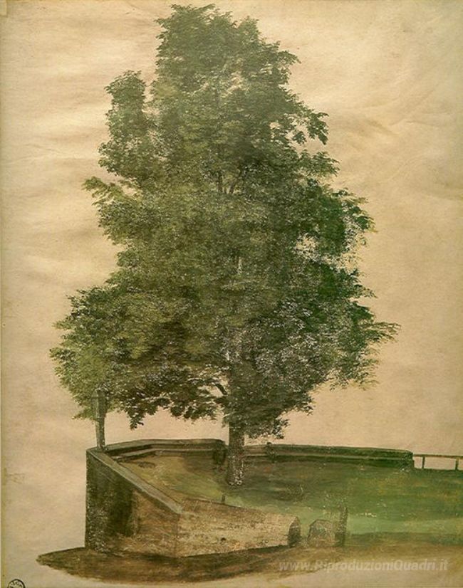 Ti offriamo una riproduzione artigianale su tela dell'opera famosa 'Linden Tree su un Bastione' di Albrecht Durer, dal Museo delle Riproduzioni.