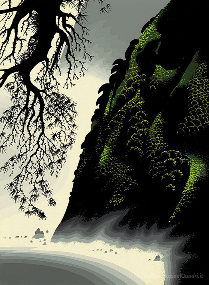 Ti offriamo una riproduzione artigianale su tela dell'opera famosa 'Little Big Sur' di Eyvind Earle, dal Museo delle Riproduzioni.