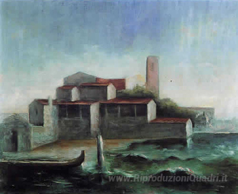 Ti offriamo una riproduzione artigianale su tela dell'opera famosa 'Lo Squero di San Trovaso' di Carlo Carra, dal Museo delle Riproduzioni.