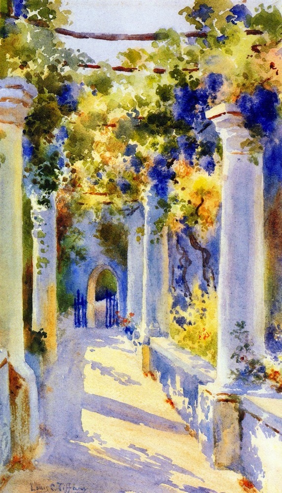 Ti offriamo una riproduzione artigianale su tela dell'opera famosa 'Loggia a Laurelton Sala' di Louis Comfort Tiffany, dal Museo delle Riproduzioni.