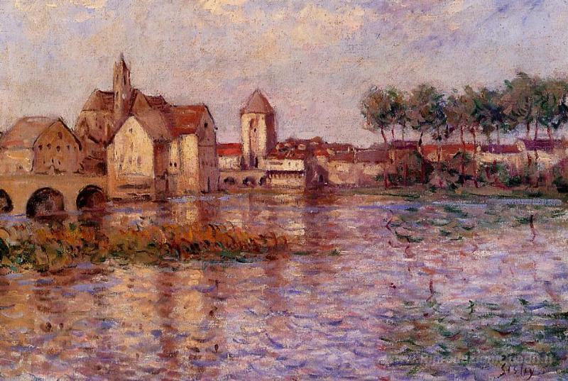 Ti offriamo una riproduzione artigianale su tela dell'opera famosa 'Loing a Moret' di Alfred Sisley, dal Museo delle Riproduzioni.