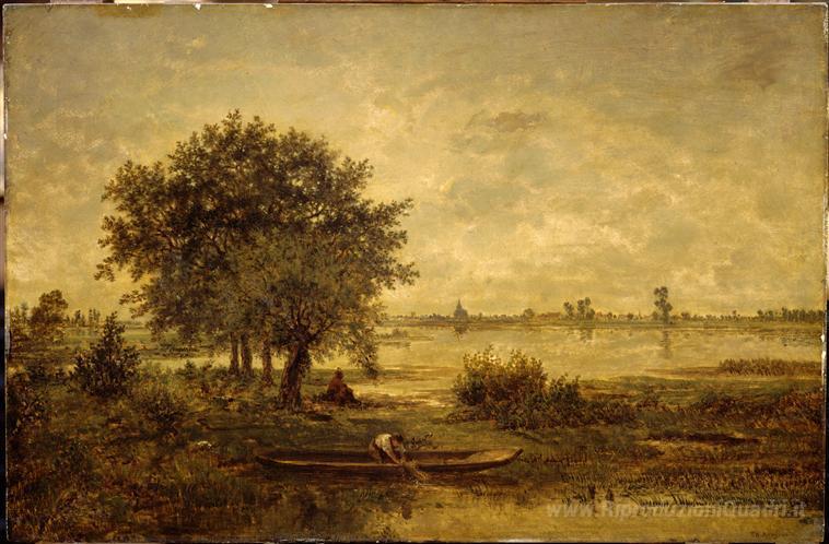 Ti offriamo una riproduzione artigianale su tela dell'opera famosa 'Loire' di Theodore Rousseau, dal Museo delle Riproduzioni.