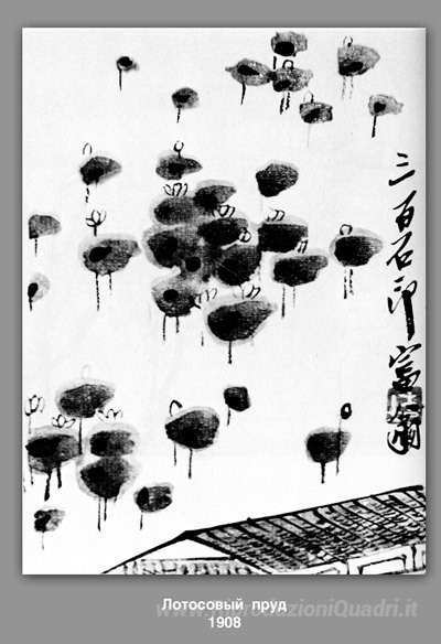 Ti offriamo una riproduzione artigianale su tela dell'opera famosa 'Lotus stagno' di Qi Baishi, dal Museo delle Riproduzioni.