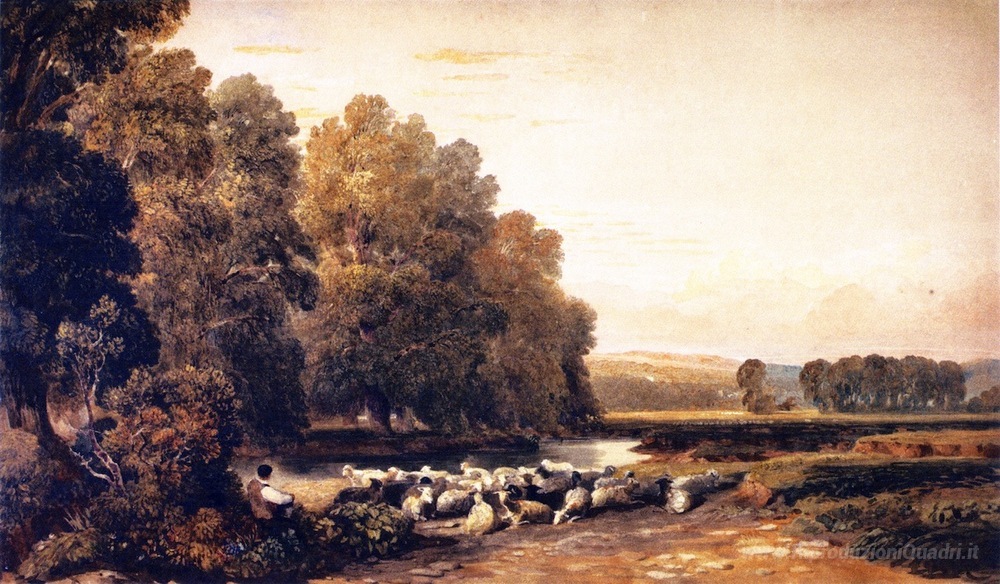 Benvenuti nel nostro prestigioso spazio dedicato ai dipinti a olio italiani, dove l'arte si fonde con l'eleganza per trasformare ogni ambiente. Oggi vi presentiamo l'incantevole opera Lugg Prati, nei pressi di Hereford, realizzata dal talentuoso artista britannico David Cox. Questa prestigiosa opera cattura la bellezza della natura con una maestria che solo un grande maestro può esprimere.