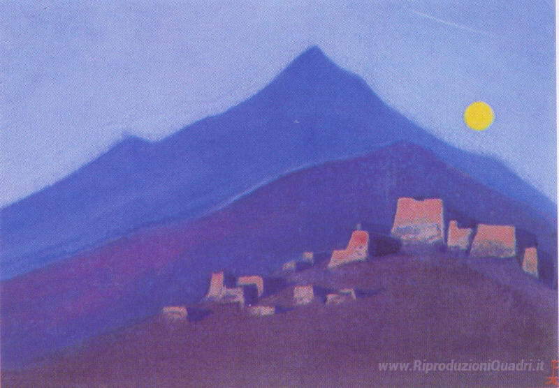 Ti offriamo una riproduzione artigianale su tela dell'opera famosa 'Luna sopra monastero in montagna' di Nicholas Roerich, dal Museo delle Riproduzioni.