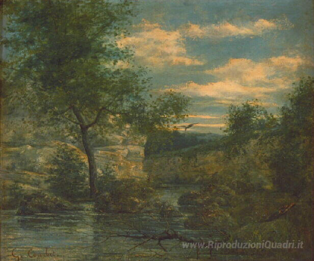 Ti offriamo una riproduzione artigianale su tela dell'opera famosa 'Lungofiume' di Gustave Courbet, dal Museo delle Riproduzioni.