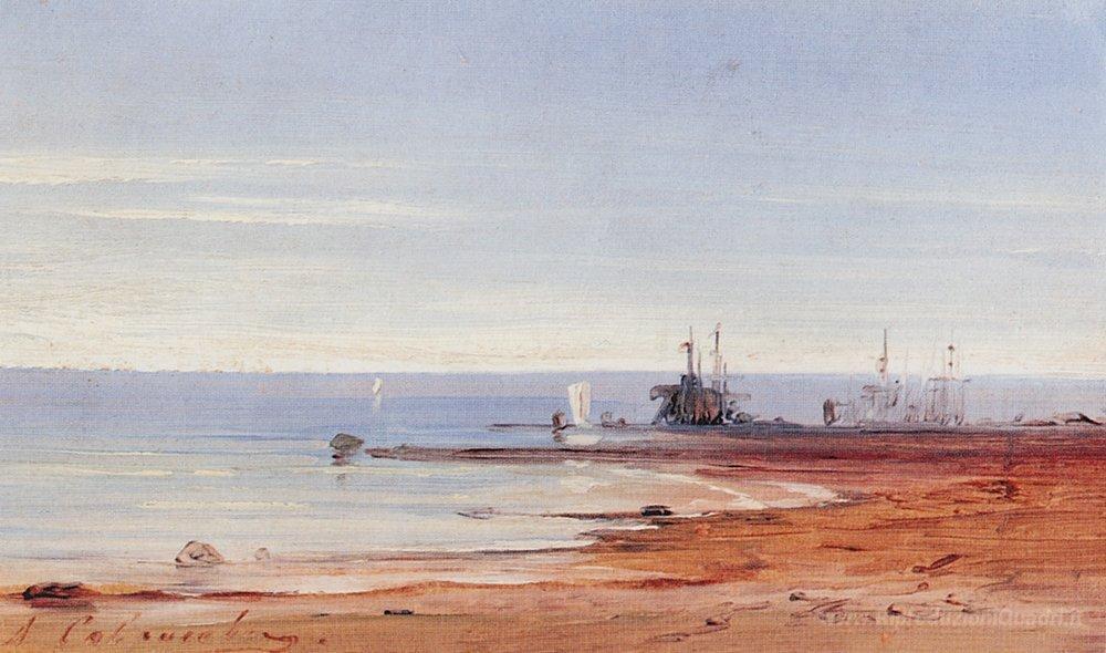 Ti offriamo una riproduzione artigianale su tela dell'opera famosa 'Mare' di Aleksey Savrasov, dal Museo delle Riproduzioni.