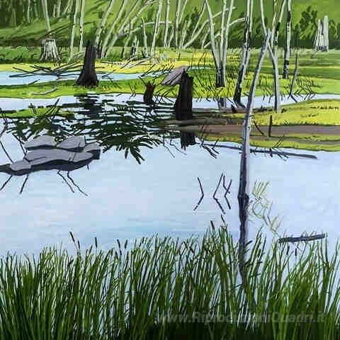 Ti offriamo una riproduzione artigianale su tela dell'opera famosa 'Marsh di Joanna' di Neil Welliver, dal Museo delle Riproduzioni.