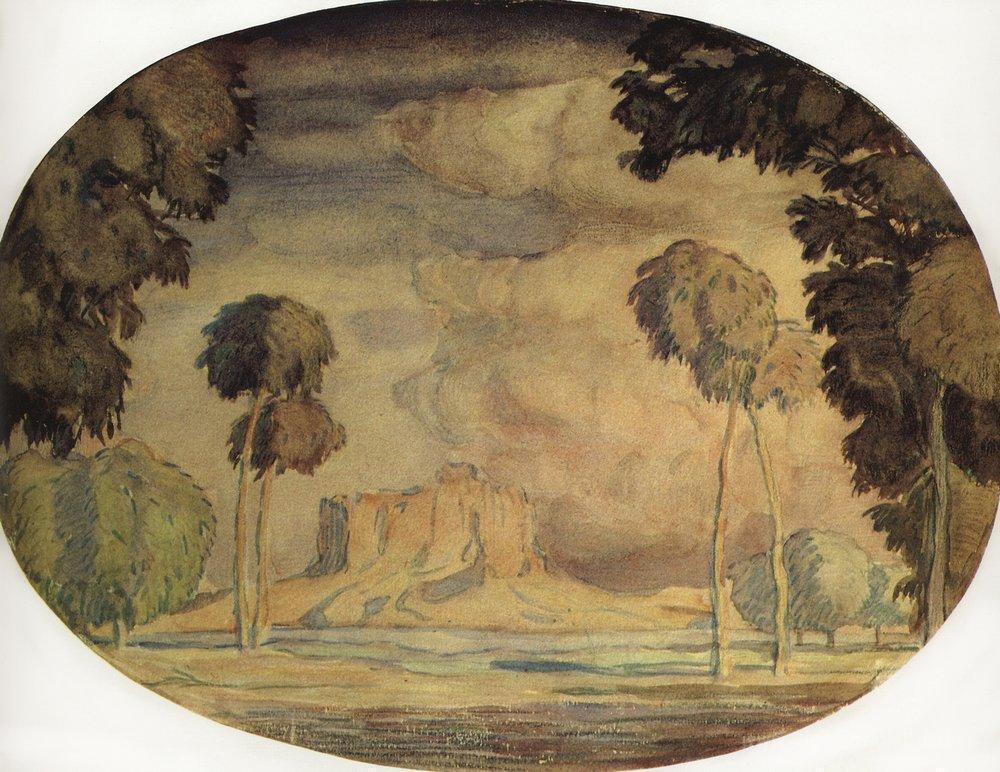 Ti offriamo una riproduzione artigianale su tela dell'opera famosa 'Mattina. Rosa gobelin.' di Konstantin Bogaevsky, dal Museo delle Riproduzioni.