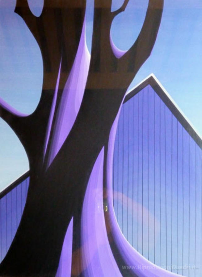 Ti offriamo una riproduzione artigianale su tela dell'opera famosa 'Mauve Barn' di Eyvind Earle, dal Museo delle Riproduzioni.