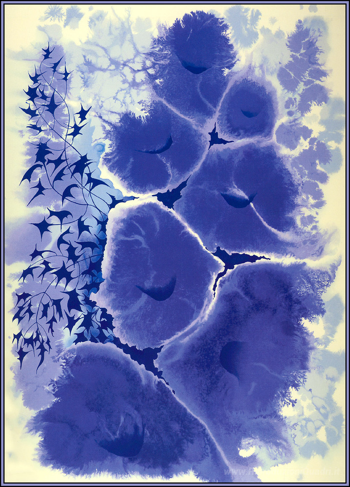Ti offriamo una riproduzione artigianale su tela dell'opera famosa 'Mauve Floral' di Eyvind Earle, dal Museo delle Riproduzioni.