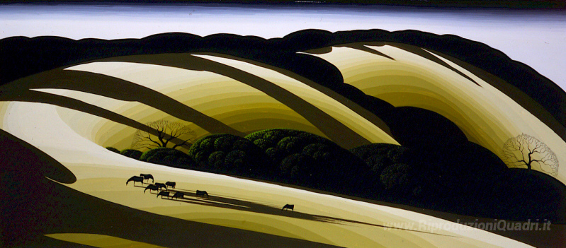 Ti offriamo una riproduzione artigianale su tela dell'opera famosa 'Mentre le ombre approfondito' di Eyvind Earle, dal Museo delle Riproduzioni.