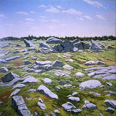 Ti offriamo una riproduzione artigianale su tela dell'opera famosa 'Mezzogiorno Barren' di Neil Welliver, dal Museo delle Riproduzioni.
