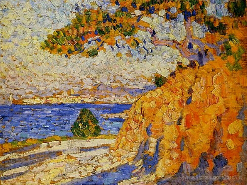 Ti offriamo una riproduzione artigianale su tela dell'opera famosa 'Midi Paesaggio' di Theo van Rysselberghe, dal Museo delle Riproduzioni.