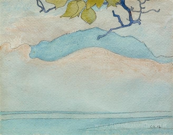 Ti offriamo una riproduzione artigianale su tela dell'opera famosa 'Mit Seelandschaft bergigem Ufer' di Cuno Amiet, dal Museo delle Riproduzioni.