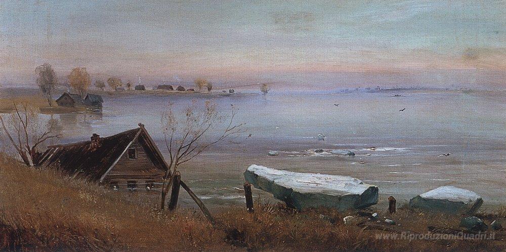 Ti offriamo una riproduzione artigianale su tela dell'opera famosa 'Molla' di Aleksey Savrasov, dal Museo delle Riproduzioni.