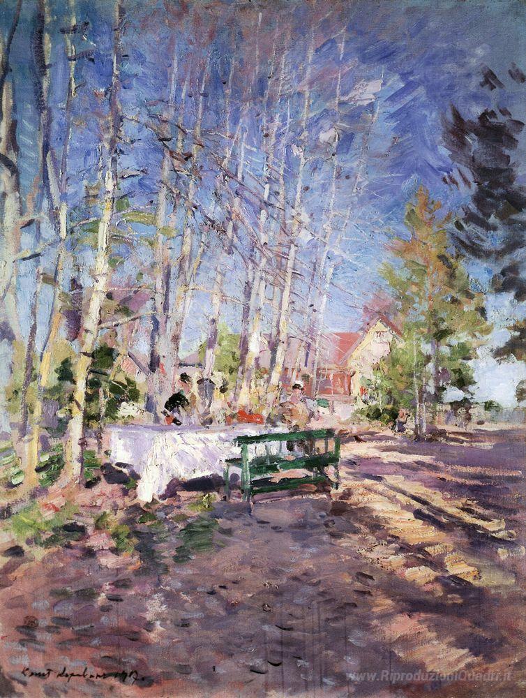 Ti offriamo una riproduzione artigianale su tela dell'opera famosa 'Molla' di Konstantin Korovin, dal Museo delle Riproduzioni.